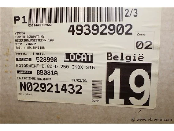 Inox rotorventilator voor schouw