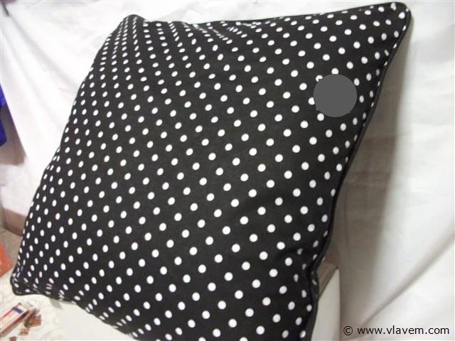 12 sierkussenslopen met rits merk ; manu jones 500 x 500 mm kleur zwart met bolletjes