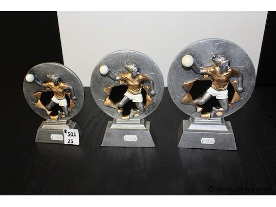 3x handball trofee hoogte 1x16cm -1x18cm -1x20cm