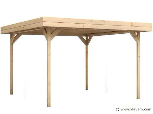 1x Priëeltje, afmetingen circa 308x340cm., hoogte 210cm., afm. geschikt voor 6 panelen, inclusief bouwtekening bouten schroeven en bevestiging, exclusief voet (zie andere kavels) en dakplaten (worden zonne collectors niet bijgeleverd) afschot zelf te bepalen dmv staanders 9x9x2,10 inkorten, , dakbalken 4,5x14,5alles geïmpregneerd/gegalvaniseerd fotos zijn voorbeeldfotos