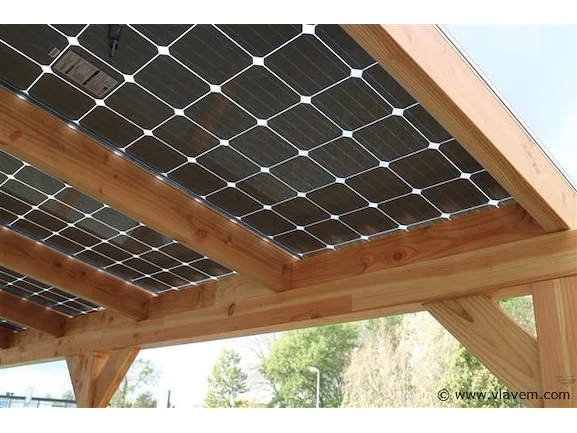 1x Carport, afmetingen circa 308x516cm., hoogte 290cm., afm. geschikt voor 9 panelen, inclusief bouwtekening bouten schroeven en bevestiging, exclusief voet (zie andere kavels) en dakplaten (worden zonne collectors niet inbegrepen) afschot zelf te bepalen dmv staanders van 9x9x290 inkorten ,dakbalken 4,5x14,5 alles geïmpregneerd/gegalvaniseerd, let op fotos zijn voorbeeldfotos