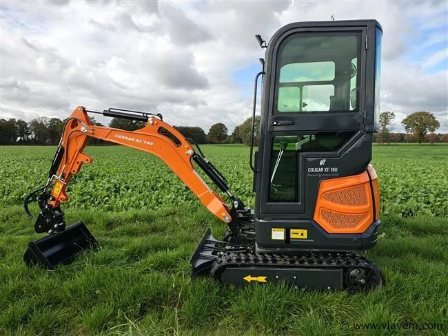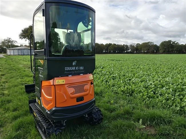 Cougar - 2025 - XT-18U, 1.800 kg minigraafmachine met 3 cilinder Kubota D902 eur5 dieselmotor van 11.8 KW. uitgerust met servo bediening. Voorzien van cabine, zwenk giek met radius van 1500mm, dozerblad 1100mm, hydraulisch bakwisselsysteem, hydrauliekpomp 22L/min, opbreekkracht 10KN, tankinhoud 9.5 liter. ongebruikte machine
