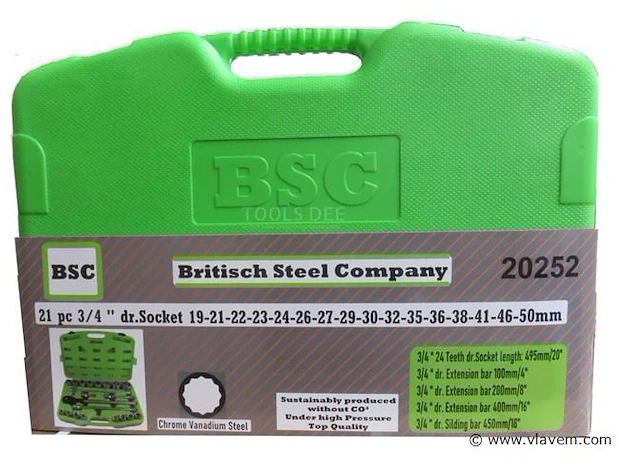 21 dlg doppenset zwaar BSC 3/4" 19 tot 50mm, nieuw in doos