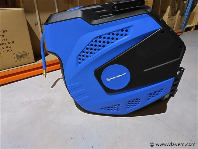 Schwartzmann automatische luchtslanghaspel met aut afslag en terugloopfunctie. Nieuw in doos