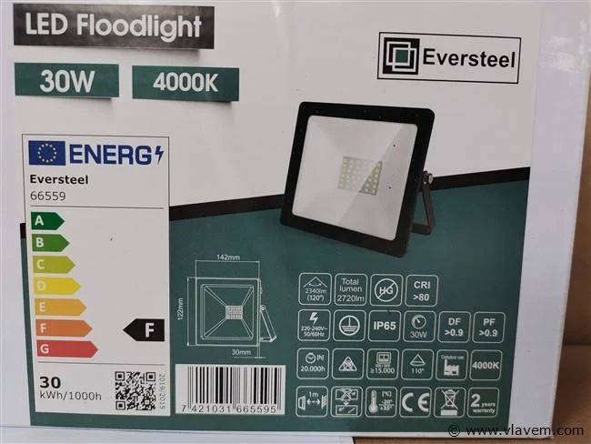 24x LED Breedstraler 30 watt, 2720 lumen, 4000K, IP65, geschikt voor buiten, branduren 20000 uur, geschikt voor meer dan 15.000 schakelingen on-off, nieuw in doos