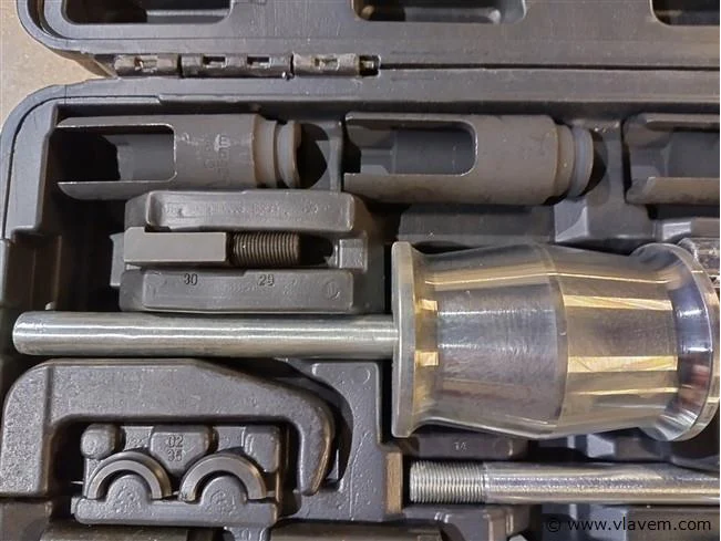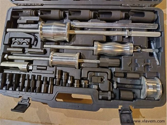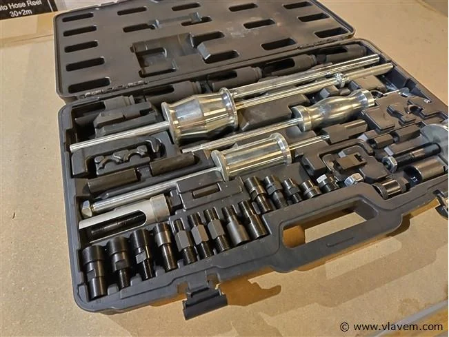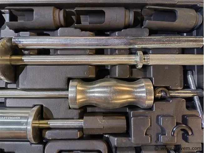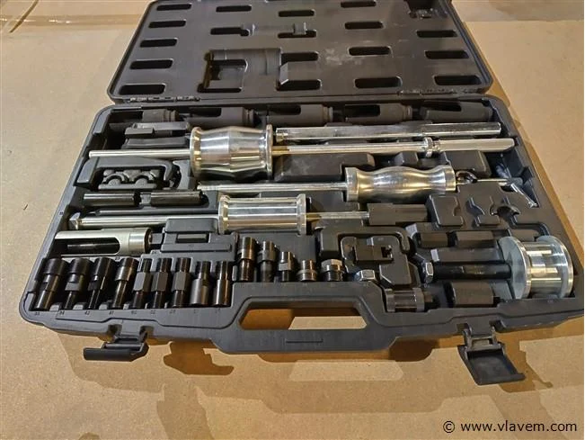 Schwartzmann 40-delige Diesel Verstuiver Trekkerset. 3x slangtrekker: 1.6kg/160mm, 2.7kg/460mm, 5.1/600mm, Trekvorken met openingen: 13.7x18mm, 105mm lang, 12.7x19mm, 130mm lang. Slotted 1/2" Drive sockets, 6 pt, 100mm long. 25/27/28/29/30mm, -Sleeve design injector extractor with supporting shells, outer diameter 35mm internal diameter 29mm, M17x1.0 spindle, -Pulling adapter with external thread M27x1.0(3pcs) and M25x1.0 -Pulling adapter with internal thread M27x1.0(3pcs), Sliding hammer adapter for inner, outer and claw extractor