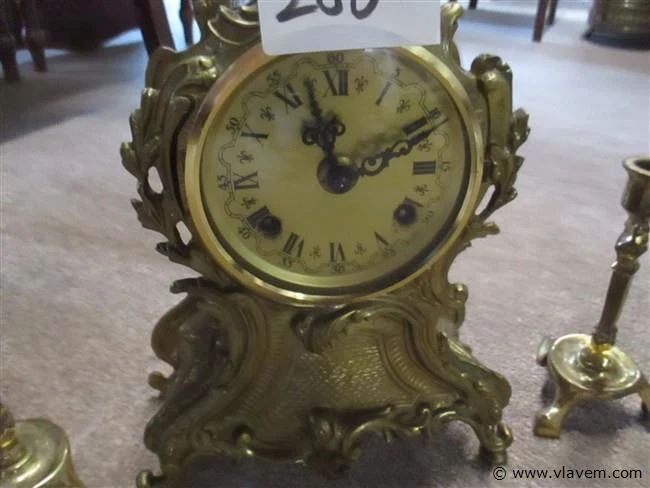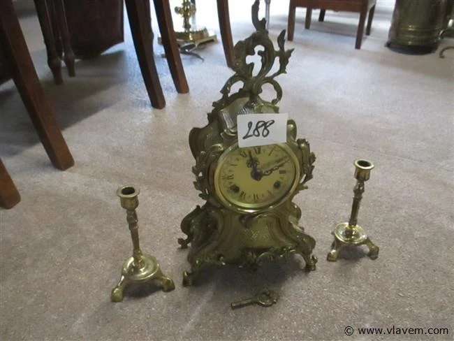 Koperen klok H35 met 2 kaarshouders H15
