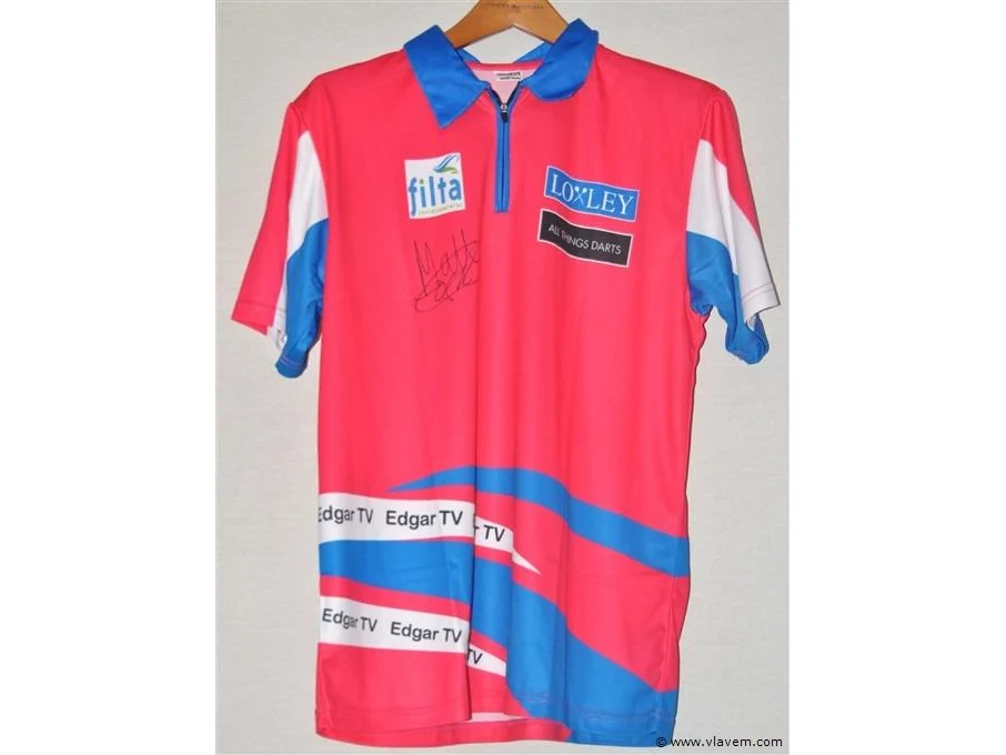 Gesigneerd darts shirt + pijlen, matthew edgar