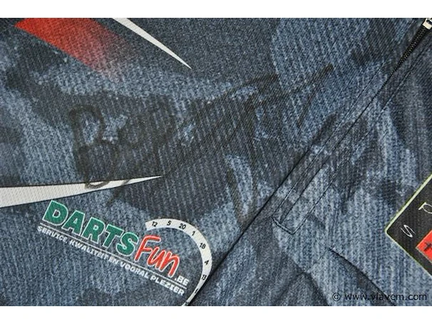 Gesigneerd darts shirt matchworn + een gesigneerde set Flights L-Style. BERRY VAN PEER, BIONIC. Dutch Open 2023 / WDF World Cup 2023 / Dutch Darts Cup X4 / Benelux Masters 2024 / 9 PDC titels.
