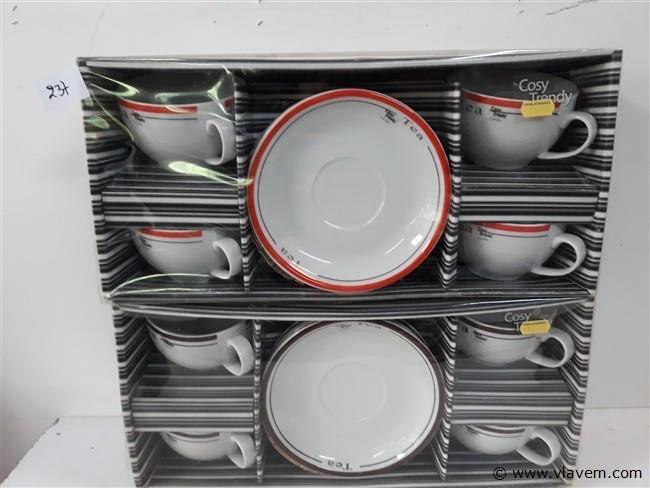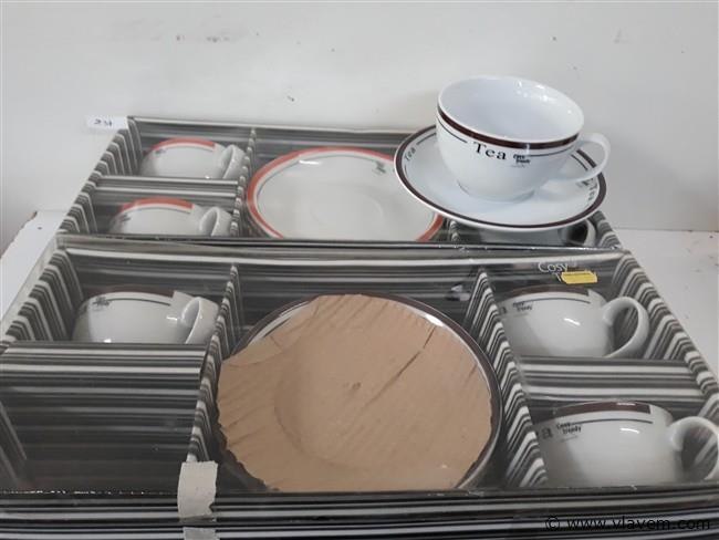 2 x Theeset 4 kop + 4 onderbord 1 x bruin + 1 x oranje