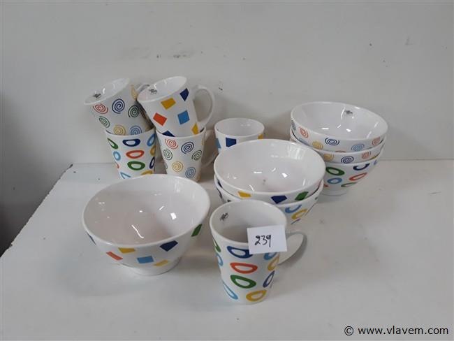 6 x Ontbijtkom met print + 6 x koffiemok met print