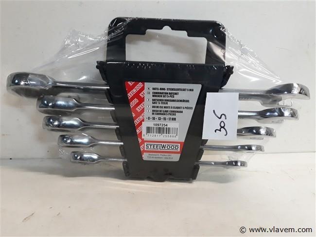 1 x Ring-ratel steeksleutel in set 5 delig 8-10-13-15-17 mm in pvc clip