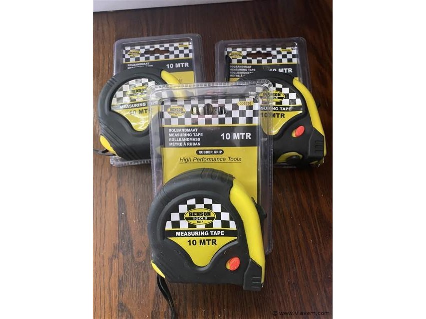 3x rolmaat 10 meter rubber