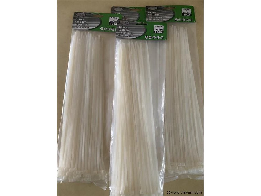 400 tie ribs 4,8x370 mm in 4 pakken van 100 wit
