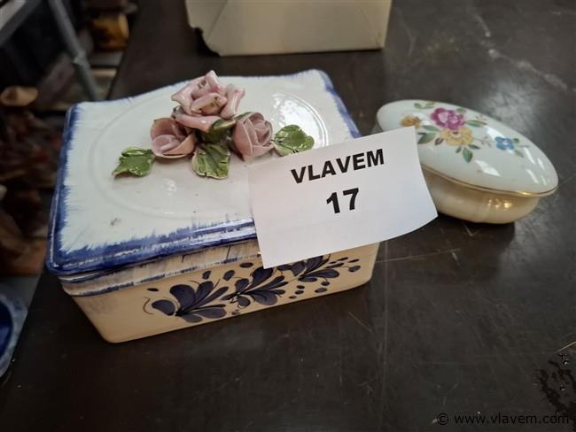 Antiek porselein dekselpotje 2 stuks waaronder BASSANO