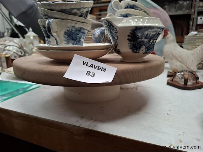 Lot antiek vaatwerk gestempeld&houten dienschaal