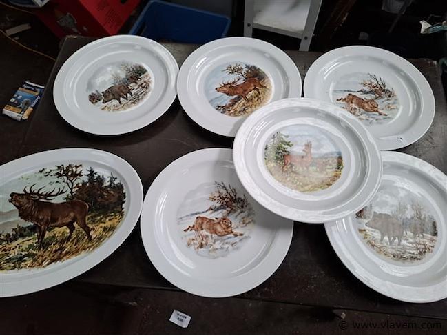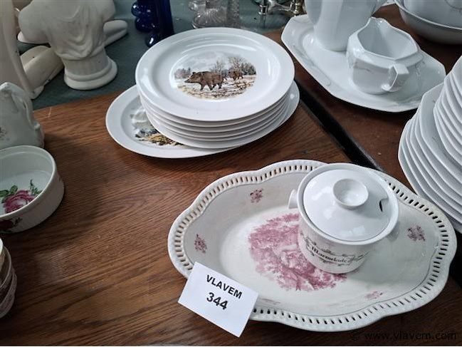 Partij vaatwerk gestempeld waaronder jachttafereel