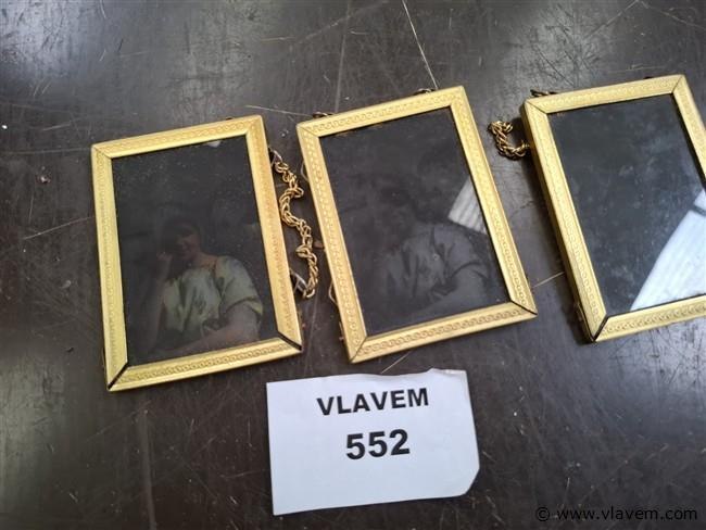 Hangfotokader 3 stuks met oude negatief achter glas 9x7