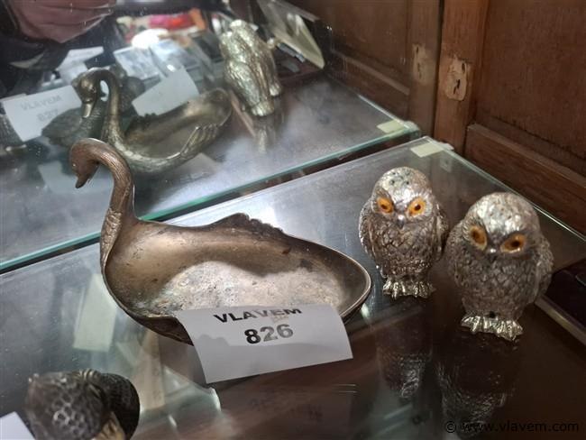 Antieke verzilverde eend en vintage stelletje uilen(zout en peper)