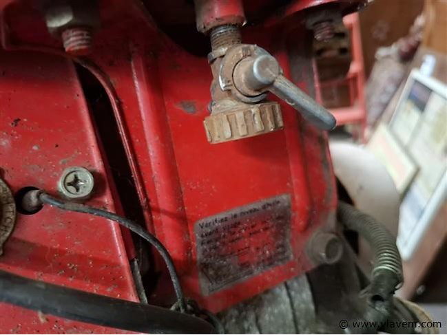 Tuinfrees op benzine(na te kijken, vermoedelijk benzinekraan)