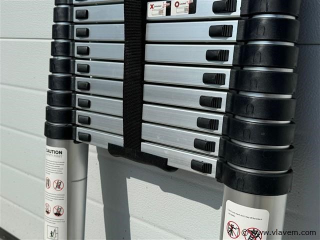 15 tredes Breedte: 50 cm Dikte: 9 cm Ingeklapt: 92 cm Volledig uitgeschoven: 440 cm