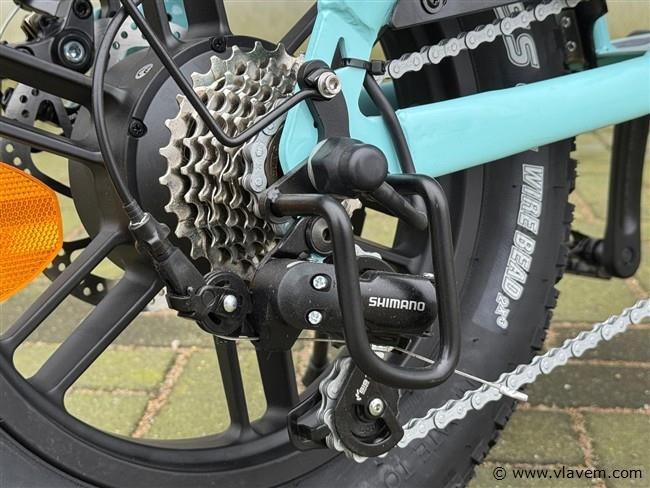 C80 elektirsche mini fatbike. Motor: 250W met trapondersteuning tot 25 km/u (conform wettelijke norm). Accu: Verwijderbare 36V 10,4Ah batterij met een actieradius tot 50 km. Banden: 16 x 4 inch fat tires voor optimale grip en stabiliteit. Remmen: Mechanische schijfremmen voor en achter. Versnellingen: Shimano 7-speed systeem voor soepel schakelen. Display: LCD-scherm met snelheid, batterijstatus en afstandsinformatie. Frame: Lichtgewicht aluminium frame met luchtgeveerde voorvork. Zadelhoogte: Ongeveer 70 cm, geschikt voor personen vanaf 1,30 meter. Extra's: Kettingkast, voetsteuntjes achter, geïntegreerde LED-verlichting, en diefstalalarm.