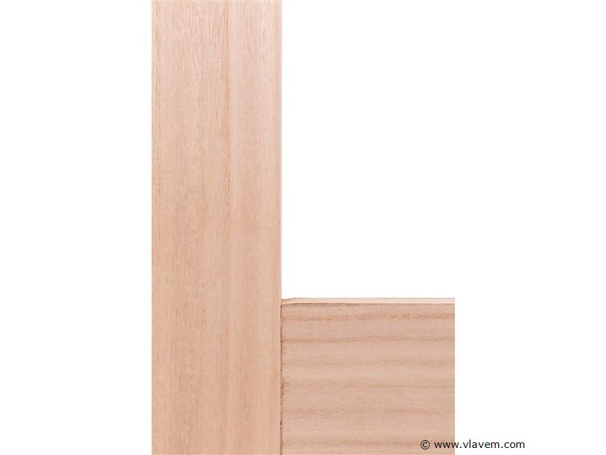 : zonder kozijnset, in massief hout, beglaasd in mat glas. Te combineren met een bestaand kozijn of nieuw kozijn. Deur reeds voorzien van frezingen voor slot en scharnieren. Afm. 40 X 730 X 2015 mm.