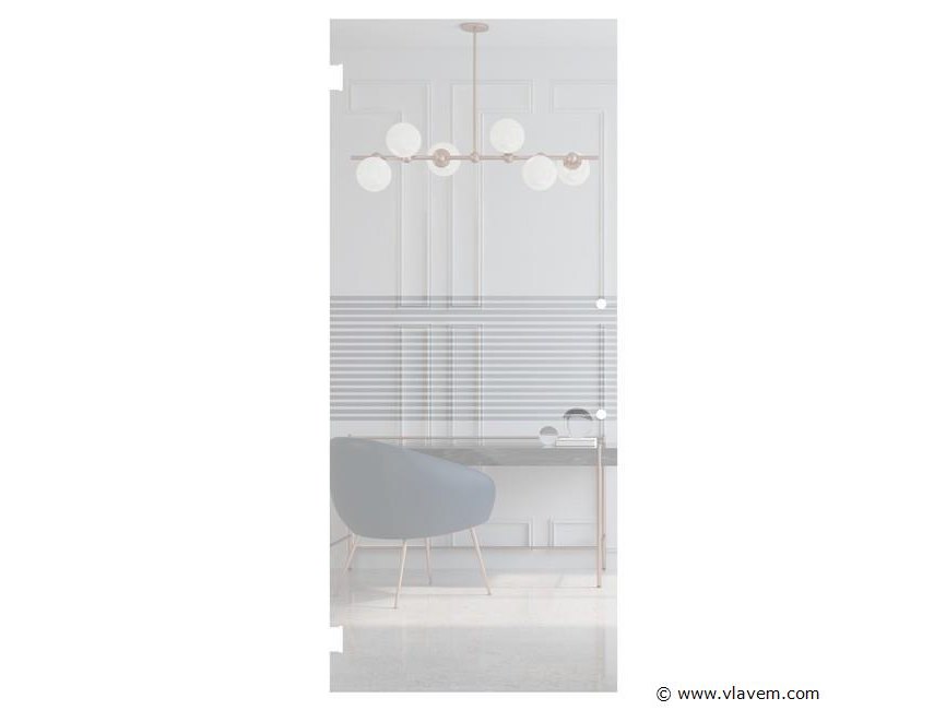2 glasdeuren in mat glas met heldere horizontale designlijnen. Bij elke deur worden twee doorslaande inox scharnieren meegeleverd alsook een inox verticale rechthoekige trekkerset. Zo heb je een compleet design glasdeurgeheel. De afmetingen van de glasdeuren zijn: 8mm(D) x 730mm(B) x 2010mm(H) en 8mm(D) x 780mm(B) x 2010mm(H)