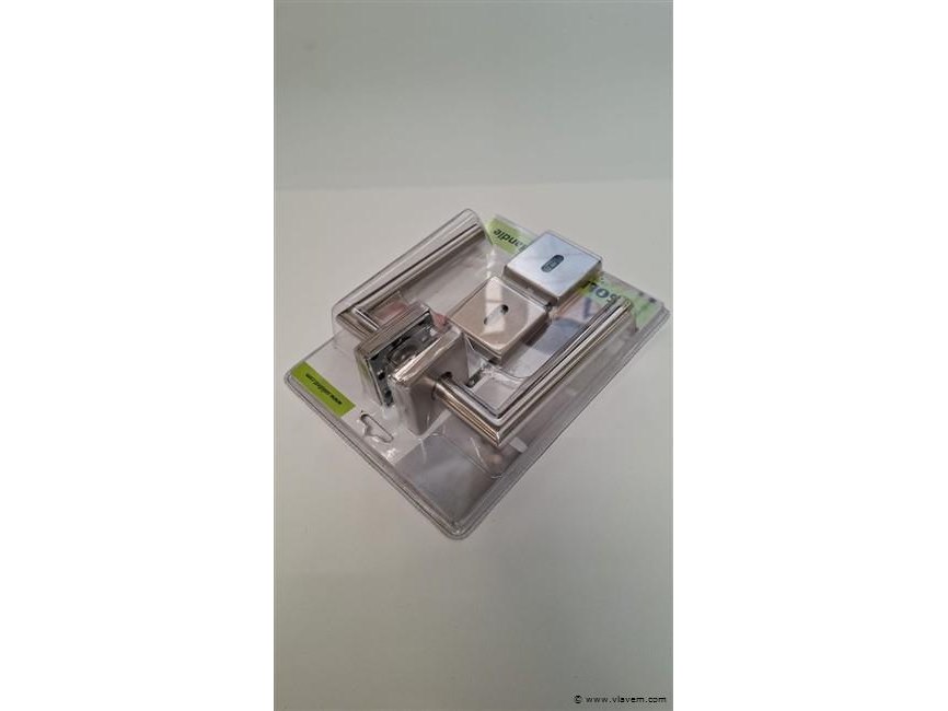 Doos bestaande uit 20 sets deurklinken. Elke set bestaat uit een deurklink voor beide zijden van de deur alsook een sleutelrosas voor beide zijden van de deur. De patentvijzen alsook de houtschroeven zijn aanwezig in elke set. Deze deurklink heeft een zeer fijne deurgreep, wat ideaal is om een moderne ‘look’ te creëren bij uw binnendeur. De afwerking in inox is tijdloos en past dan ook bij elke deur. Omwille van een overstock worden deze deurklinken onder productieprijs verkocht.