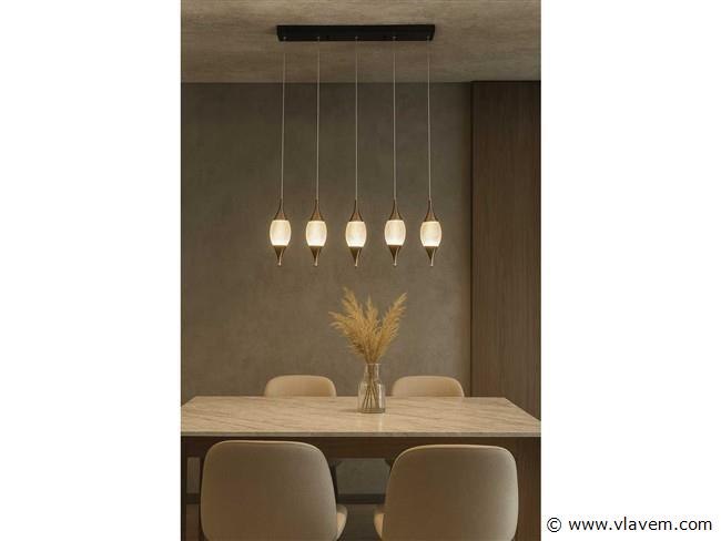 LED hanglamp model B040/5 – Kleurtemperatuur 3000K (warm wit) – BreedteA: 600 mm – In hoogte verstelbaar – Lichtbron: geïntegreerde LED-strip – Voltage: 220-240V (50/60 Hz) – Inclusief montageset – Perfect geschikt voor moderne binnenverlichting: eetkamer. woonkamer. keuken of kantoor – 3 jaar garantie.