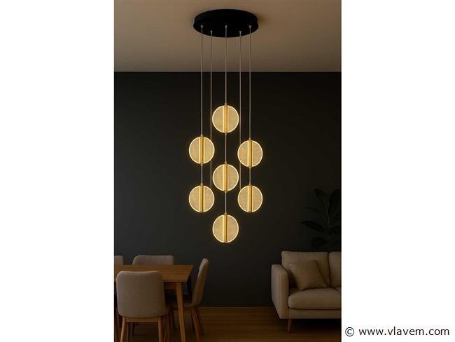 LED hanglamp model B067/7 – Kleurtemperatuur 3000K (warm wit) – Diameter: 400 mm – Hoogte instelbaarE – Lichtbron: geïntegreerde LED-strip – Spanning: 220-240V (50/60 Hz) – Inclusief montageset – Geschikt voor gebruik binnenshuis: woonkamers. slaapkamers. kantoren of woonruimtes – 3 jaar garantie.