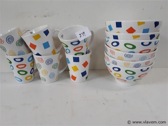 6 x Ontbijtkom met print + 6 x koffiemok met print