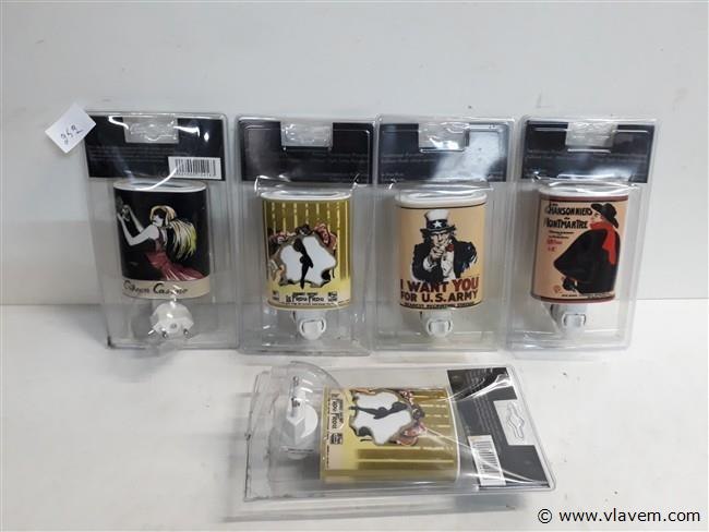5 x Nachtlamp porselein plug in met schakelaar diverse motieven