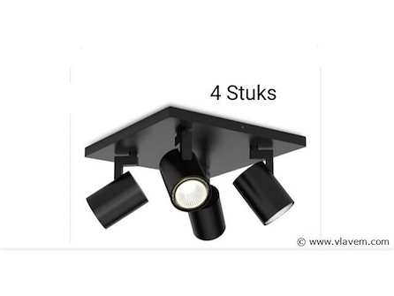 4 stuks plafondlamp kona zwart
