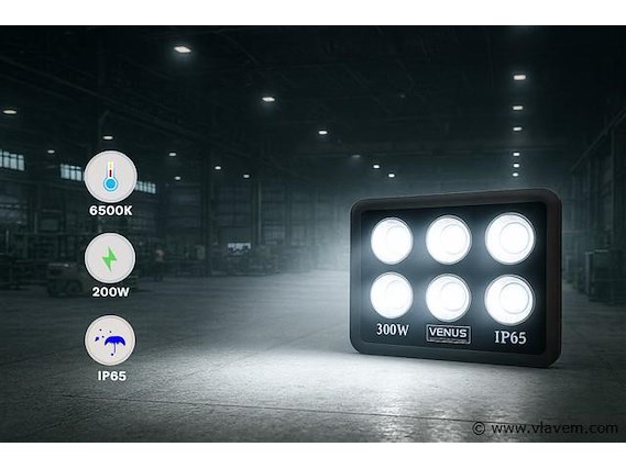 4 x LED-spot 300W – 6500K – IP65 – High-power LED-projector – Vermogen: 300W – Lichtstroom: 30.000 lumen – Kleurtemperatuur: 6.500K (koud wit) – Type dE LED: COB – Beamhoek: 120° – Kleurweergave-index (IRC): 80 Ra – Biedt intense. gelijkmatige verlichting voor grote oppervlakken – IP65 (beschermd tegen stof en waterstralen) – Inclusief LED-driver voor stabiele prestaties – DimensIonen: 420 x 316 x 87 mm – Spanning: 85-265V (50/60Hz) – Levensduur: 30.000 uur – Geschikt voor gebruik binnen en buiten – Ideaal voor tuinen. gevels. magazijnen en industriële ruimtes.