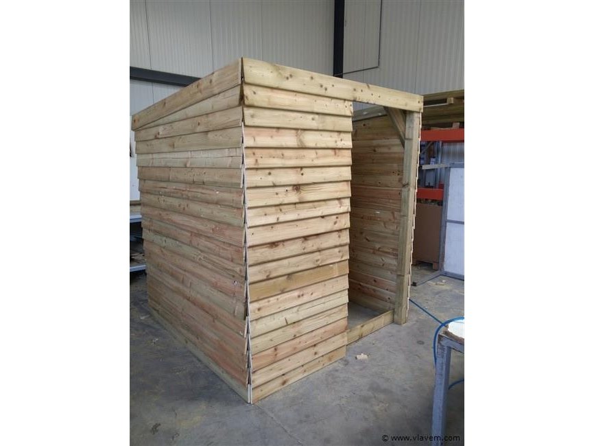 Schuilhut 1.80 x 3.60 geimpregneerd grenen met 3 gesloten wanden en voorwand wordt geleverd als bouwpakket bevestigingsmateriaal inbegrepen excl nietjes dakplaten niet inbegrepen.