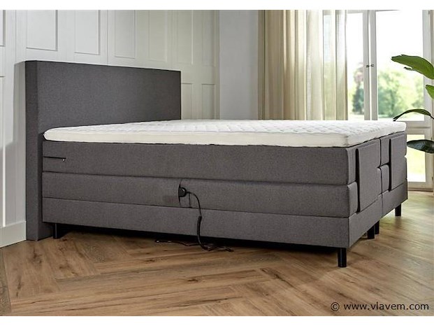 18501 Elektrische boxspring verona. Afmeting 140 x 200, Antraciet Het hoofdbord is even breed als het bed (voorbeeld 180x116x10). Het matras is 7 zone pocket geveerd. de topper is ca 5cm dik en het materiaal is comfort schuim. de onderbox bestaat uit een frame deel (de plint) daar boven op zit het beweegbare matras deel gemonteerd. Deze is ook pocket geveerd. hier boven op komen dan weer de matrassen en de topper. De pootjes bij 12cm zwart rond. Het is gehard plastic. De instaphoogte is ca 65cm