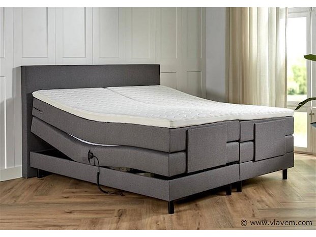 18501 Elektrische boxspring verona. Afmeting 160 x 200, Antraciet Het hoofdbord is even breed als het bed (voorbeeld 180x116x10). Het matras is 7 zone pocket geveerd. de topper is ca 5cm dik en het materiaal is comfort schuim. de onderbox bestaat uit een frame deel (de plint) daar boven op zit het beweegbare matras deel gemonteerd. Deze is ook pocket geveerd. hier boven op komen dan weer de matrassen en de topper. De pootjes bij 12cm zwart rond. Het is gehard plastic. De instaphoogte is ca 65cm