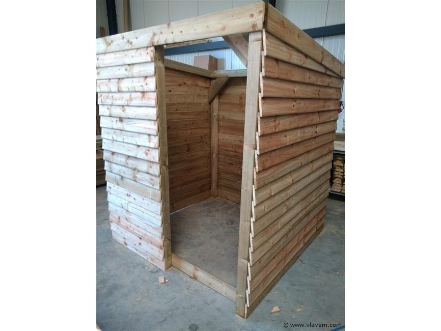Schuilhut 1.80 x1.80 geimpregneerd grenen met 3 gesloten wanden en voorwand wordt geleverd als bouwpakket bevestigingsmateriaal inbegrepen excl nietjes dakplaten niet inbegrepen.
