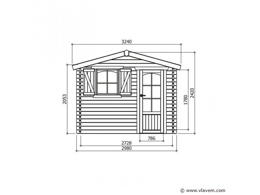 Het tuinhuisje Servoz is een traditionele blokhut uit gecertificeerd noord europees vurenhout.de ramen beschikken over praktische en elegante luikjes.de versterkte dikte van de muren zorgt voor een betere isolatie.afmetingen: 2980 x 2980 x2392 mm.fundament:3980 x 2980 mm.oppervlakte:8.88m2.binnenoppervlakte:7.44m2.wanddikte:40mm.type dak:zadeldak met shingels.materiaal: onbehandeld te behandelen 31.10m2. gratis levering aan huis een tiental dagen voor de levering wordt u geinformeerd over de leverdatum.
