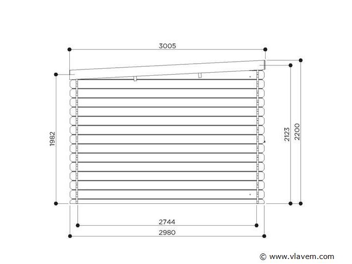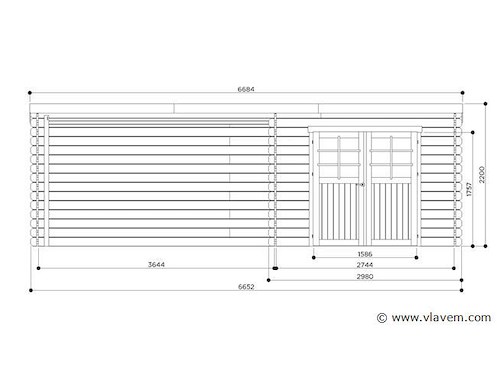 Deze moderne blokhut rohan is gemaakt uit gecertificeerd Noord-Europees vurenhout. Hij beschikt over een plat dak. een dubbele "low entry" deur voorzien van veiligheidsglas en een deurkruk met een kindvriendelijk slot en dakroofing.Specificaties Afmetingen: 2980 + 3611 x 2980 x 2200 mm.Fundamentmaat: 6552 x 2980 mm.Oppervlakte: 8.88 m².Binnen oppervlakte: 7.53 m².Wanddikte: 28 mm.Type dak: Plat dak.