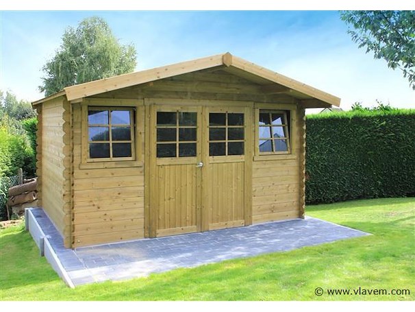 Het Solid tuinhuisje 'Dole' is een traditionele blokhut uit geïmpregneerd en gecertificeerd Noord-Europees vurenhout. De praktische dubbele deur vergemakkelijkt de toegang en is ideaal om al uw tuingereedschap in te zetten. De versterkte dikte van de muren zorgt voor een betere isolatie van uw gebouw. Deze middelgrote en zeer lichtende chalet beschermt perfect uw fietsen. kruiwagen. grasmachine en tuinstoelen het hele jaar door.Afmetingen: 3880 x 2980 x 2392 mm.Type dak: Zadeldak zwarte roofing.