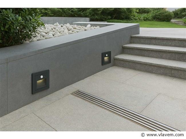 8 x LED trapverlichting met sensor (LY03) . ModelInbouw vierkant . Vermogen: 3W . LED type: COB . Lichtstroom: 270 lumen . Kleurtemperatuur: 3000K (warm wit) . Afmetingen: 85 x 85 x 45 mm . Hoogwaardig aluminium . Stijlvolle antraciet afwerking . Levensduur: 30.000 uur . 85.265V (50/60Hz) . Beschermingsgraad: Beschermingsgraad: IP65 (volledig stofdicht en beschermd tegen waterstralen) . Geschikt voor gebruik binnen en buiten . Automatische bewegingsdetectie voor handige en veilige verlichting . Inclusief lichtbron . Eenvoudige inbouwinstallatie met meegeleverde kit