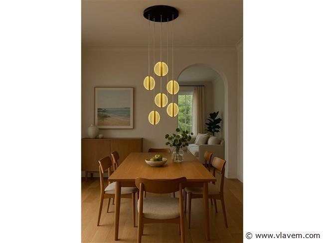 LED hanglamp model B067/5 . Kleurtemperatuur 3000K (warm wit) . Diameter: 350 mm . In hoogte verstelbaar . Lichtbron: geïntegreerde LED strip . Tension: 220_240V (50/60 Hz) . Inclusief montageset . Geschikt voor gebruik binnenshuis: woonkamers, Slaapkamers, kantoren of woonruimtes . 3 jaar garantie